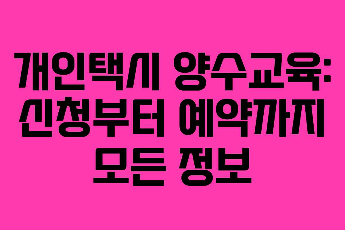 개인택시 양수교육은 개인택시 사업을 시작하기 위한 중요한 첫걸음입니다. 교육 신청이 경쟁이 치열하므로 미리 준비하고 신속하게 신청하는 것이 중요합니다.