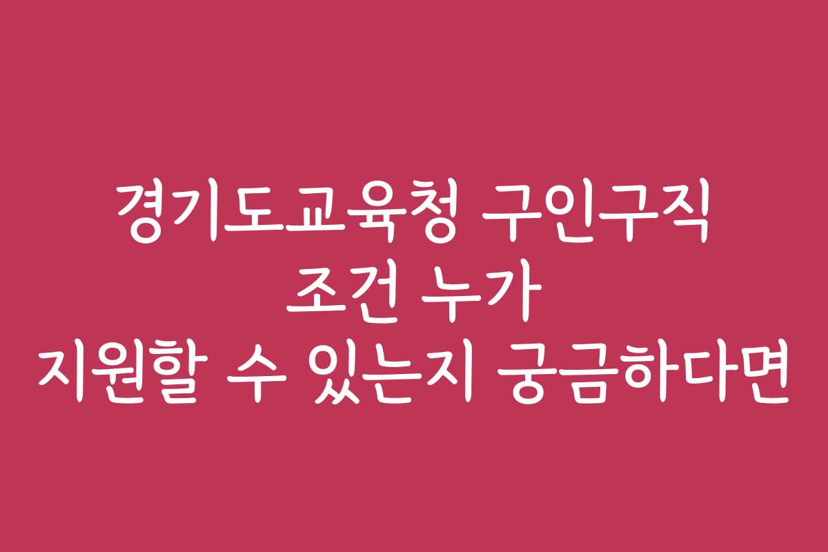 많은 분들이 경기도교육청의 구인구직 조건에 대해 궁금해 하실 텐데요. 어떤 자격 요건이 필요한지, 과연 누가 지원할 수 있는지에 대한 정보는 매우 중요합니다. 아래를 읽어보시면 지원 조건 및 관련 정보에 대해 자세히 알 수 있습니다.