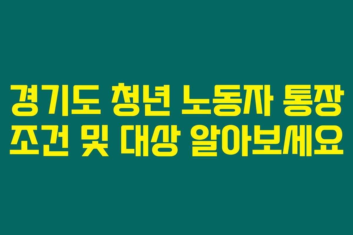 경기도 청년들의 경제적 자립에 큰 도움이 될 수 있는 경기도 청년 노동자 통장은 어떤 조건과 대상이 있을까요? 만약 청년 노동자 통장을 이용할 수 있는 분이라면, 이 기회를 통해 자신의 미래를 더욱 풍요롭게 만드실 수 있습니다. 아래를 읽어보시면 이 통장을 신청하기 위한 조건과 대상에 대해 상세히 안내드릴게요.