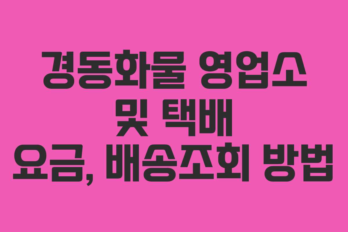 - 경동화물 영업소 및 요금, 배송조회 방법을 잘 활용하면 편리하게 서비스를 이용할 수 있습니다.
