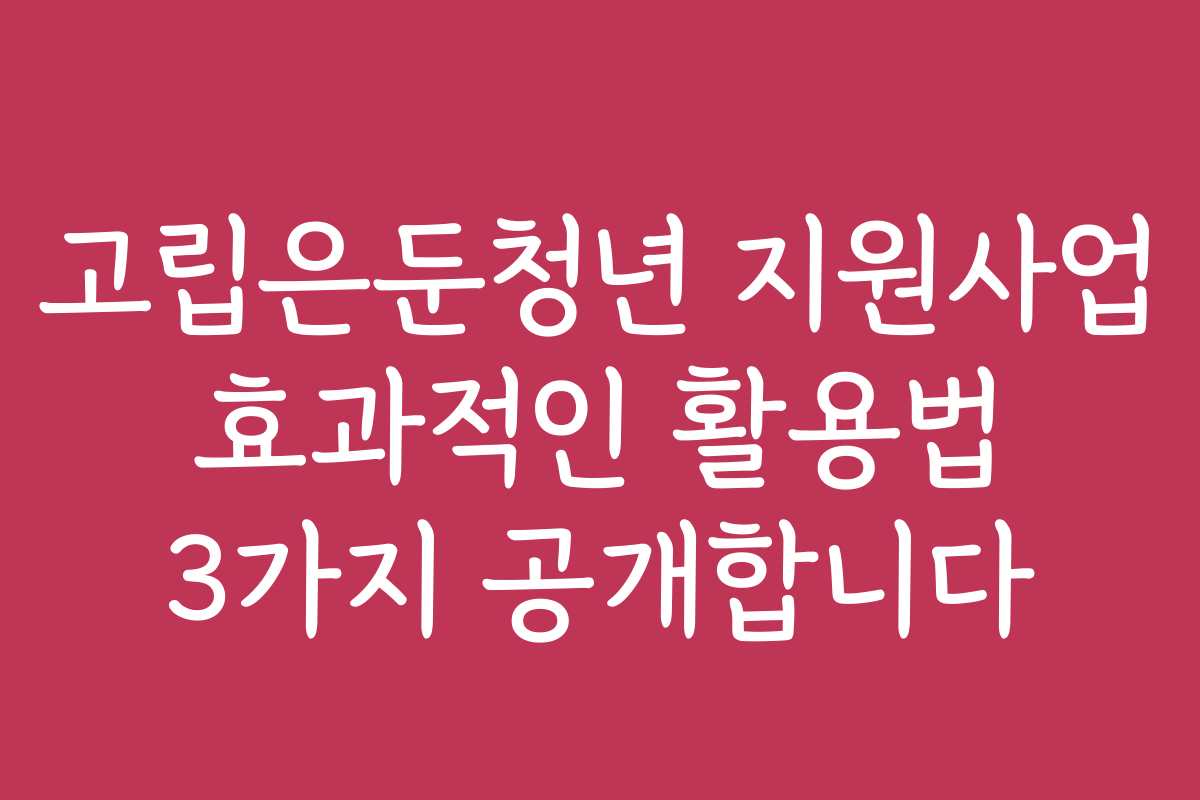 A: 고립은둔청년 지원사업을 활용하기 위해서는 우선 지원 대상인지 확인하는 것이 중요해요. 자신에게 맞는 프로그램을 선택하고 신청해야 합니다.