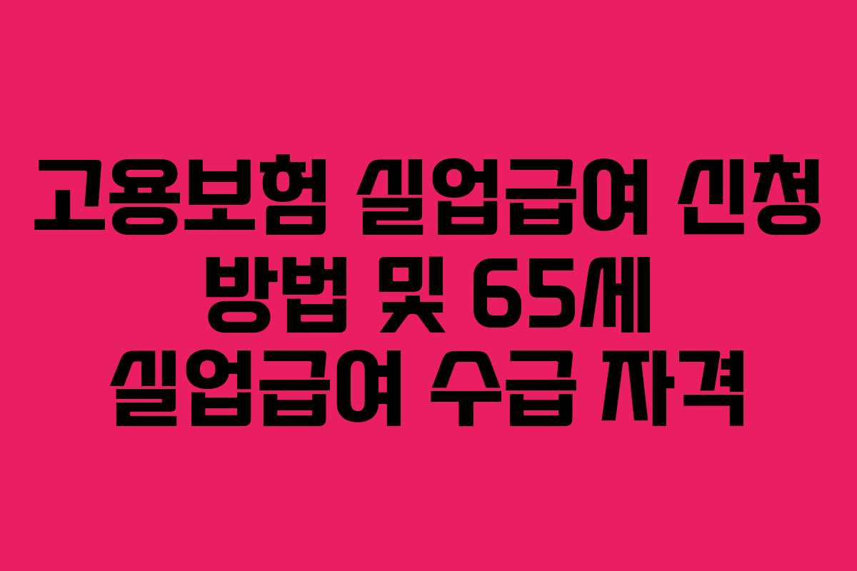 고용보험 실업급여는 실직 후 경제적 어려움을 겪는 근로자를 지원하는 제도입니다. 특히 65세 이상 근로자에게도 중요한 정보가 필요합니다. 본 글에서는 실업급여 신청 절차와 65세 실업급여 수급 자격에 대해 알아보겠습니다.