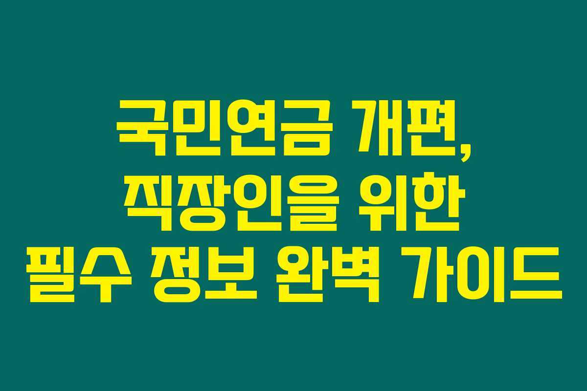 제가 직접 알아본 바로는, 국민연금 개편이 직장인들에게 큰 변화를 가져올 것입니다. 노후 대비를 위해서는 이 변화에 대한 이해가 필수적이에요. 직장인분들이 알아야 할 주요 변화 포인트와 대처 방안을 아래를 읽어보시면 자세히 알 수 있습니다!