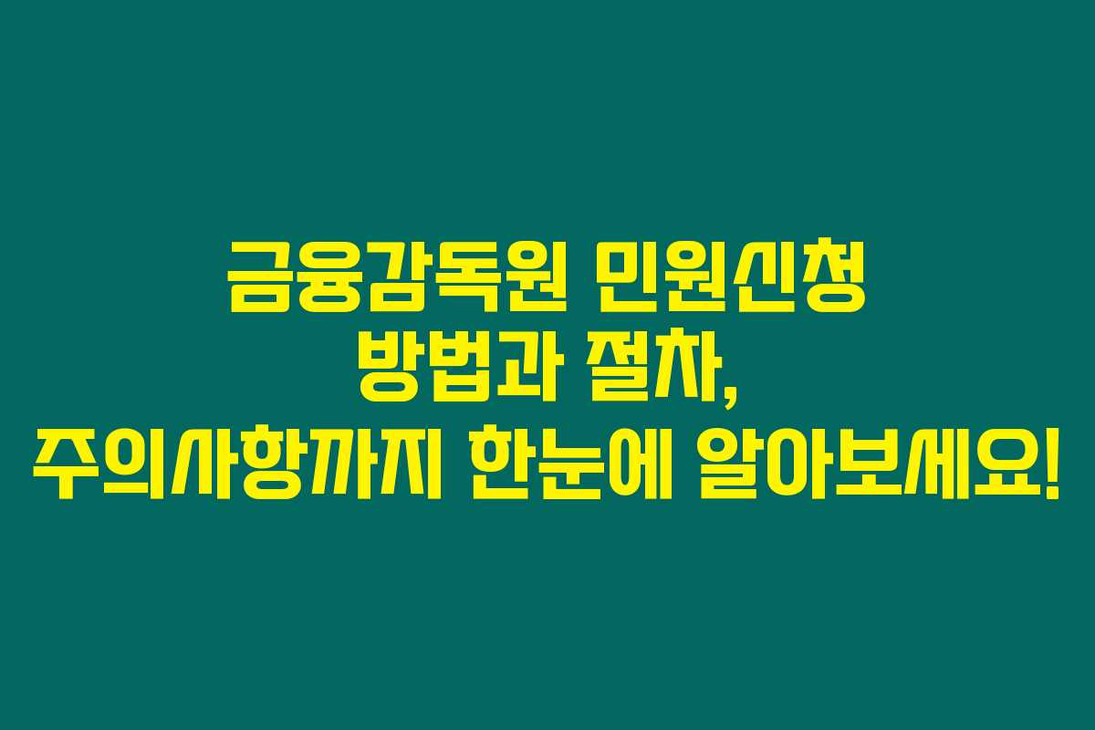 금융감독원에 민원을 신청하고자 하는 분이라면, 이 글을 꼭 읽어보셔야 해요. 금융감독원 민원신청은 소비자의 권리를 보호하고 올바른 금융 거래를 위해 매우 중요한 절차인데요. 민원신청 방법과 절차, 주의사항까지 상세히 안내드릴게요. 아래를 읽어보시면 금융 거래에서 불이익을 당했을 때 어떻게 대처해야 할지 가이드라인을 확실하게 알 수 있을 거예요!