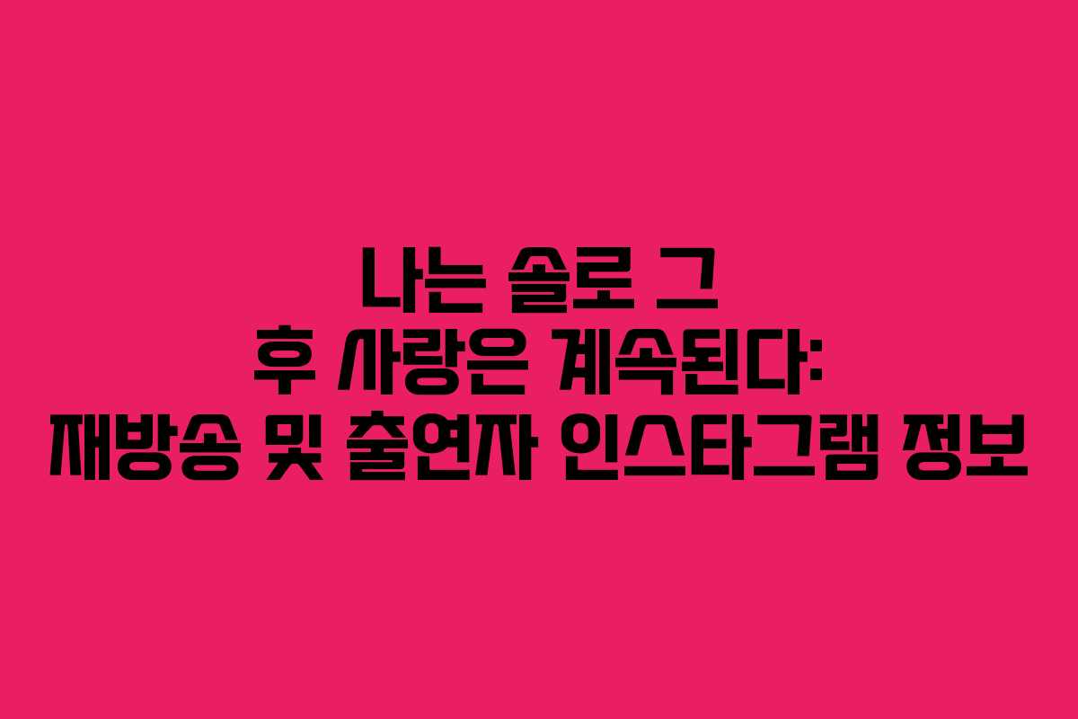 ‘나는 솔로 그 후 사랑은 계속된다’는 많은 시청자들에게 사랑받고 있는 프로그램으로, 매회 다양한 사랑 이야기를 담고 있습니다. 이번 글에서는 프로그램의 재방송 정보와 출연자들의 인스타그램 계정에 대해 알아보겠습니다.