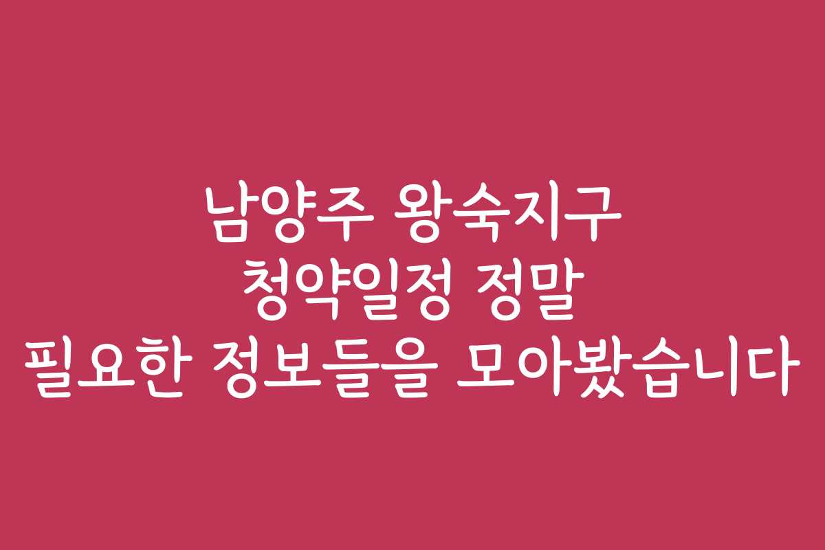 태그: 남양주, 왕숙지구, 청약일정, 정보, 팁, 후기, 전략, 준비물, 자격요건, 주택청약, 신청방법