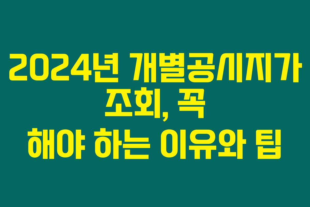 제가 직접 체크해본 바로는, 여러분이 부동산을 소유하고 있거나 거래를 계획 중이라면 2024년 개별공시지가 조회가 필수적이에요. 개별공시지가는 부동산 세금, 거래를 담당하는 중대한 요소로, 이를 명확히 이해하는 것이 좋습니다. 아래를 읽어보시면 개별공시지가의 중요성과 조회 방법, 이의 신청 과정 등을 상세히 아실 수 있을 거예요.