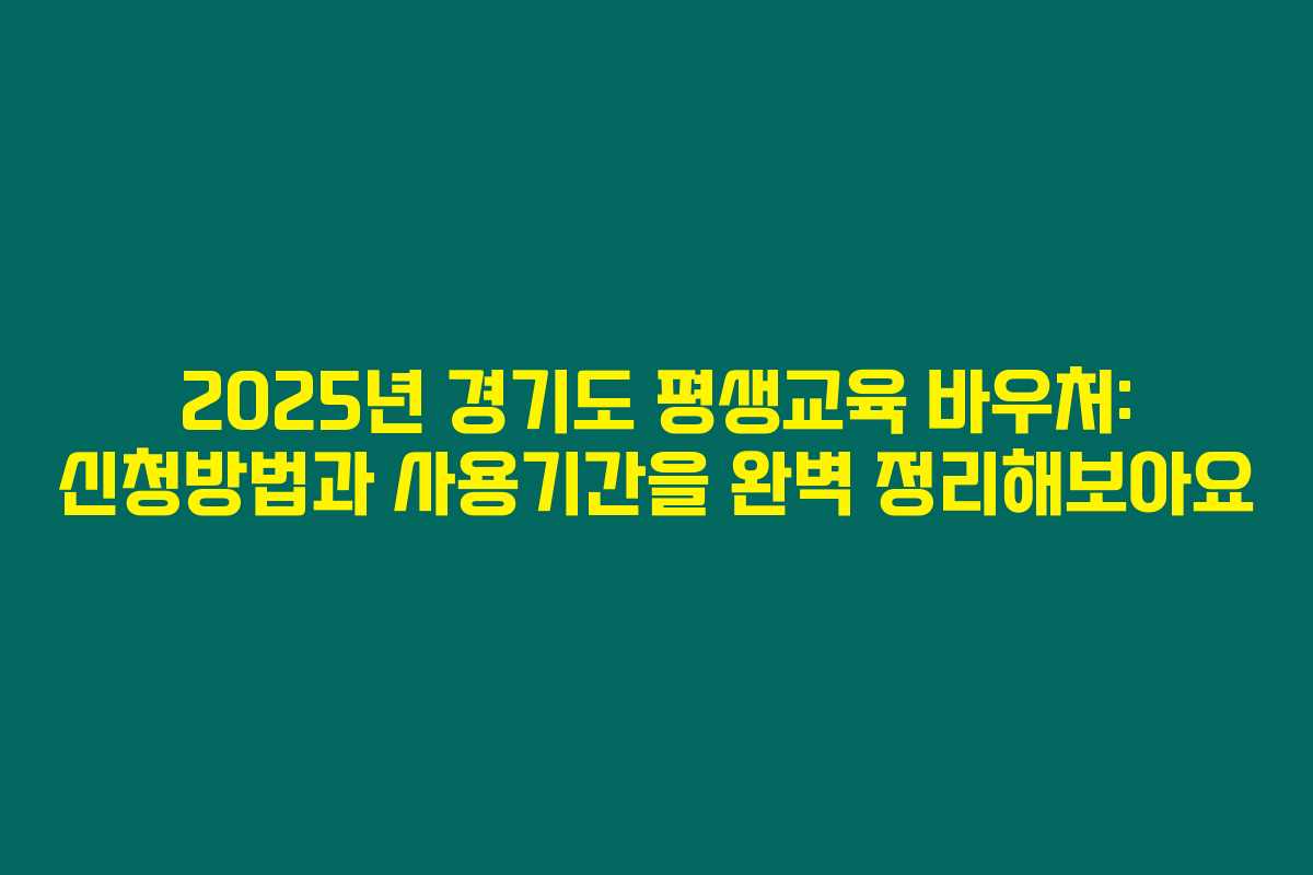 제가 직접 경험해본 결과로는, 경기도에서 제공하는 평생교육 바우처는 교육의 기회를 평등하게 누릴 수 있도록 돕는 아주 유용한 제도랍니다. 2025년에 1인당 35만 원의 교육비 지원이 가능하니, 기회를 놓치지 마세요. 아래를 읽어보시면 신청기간, 자격 및 신청방법, 사용기간과 사용처 등 모든 내용을 상세히 정리했습니다.