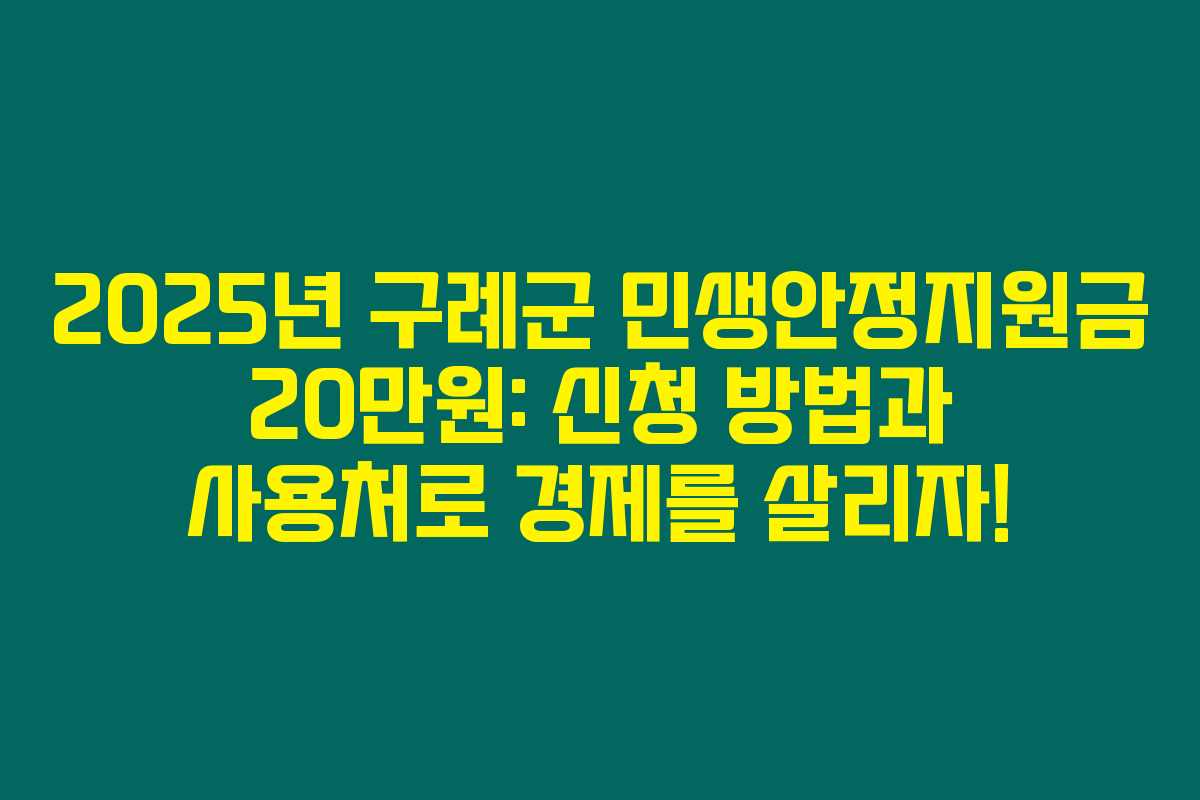 이 민생안정지원금은 지역 주민들의 경제적 부담을 덜어주고 지역 상권을 활성화하는 중요한 정책으로, 구례군 내 소규모 자영업자와 소상공인에게도 큰 도움이 될 것입니다.