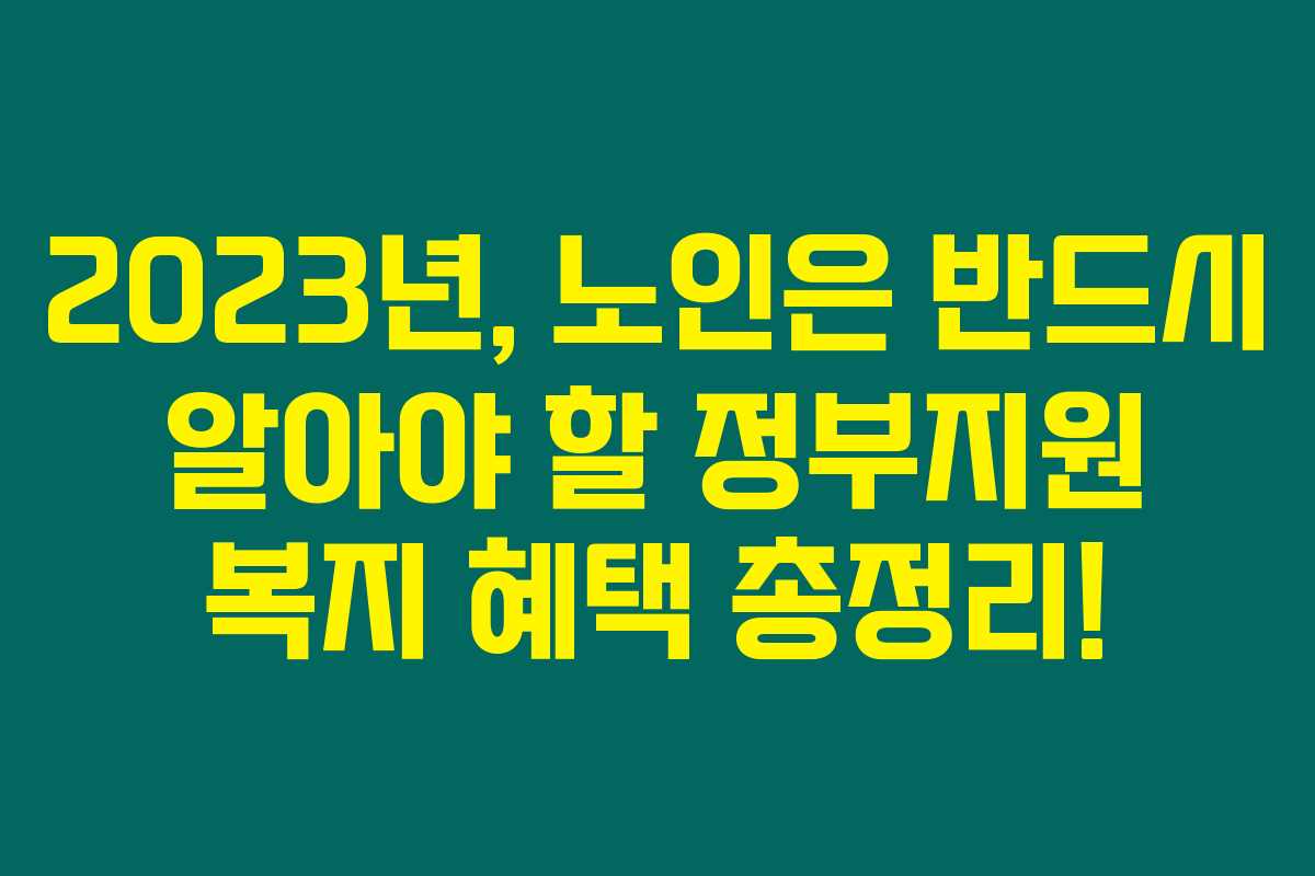고령화 사회 속에서 노인의 생활 안정을 위해 다양한 정부의 지원이 있다는 사실, 알고 계셨나요? 노후에 필요한 경제적 지원부터 일상 생활에서의 건강 관리까지, 2023년에 알아두면 큰 도움이 될 노인 복지 혜택을 소개합니다. 아래를 읽어보시면, 여러분이나 주변의 어르신들에게 어떤 지원이 가능한지 알 수 있습니다.