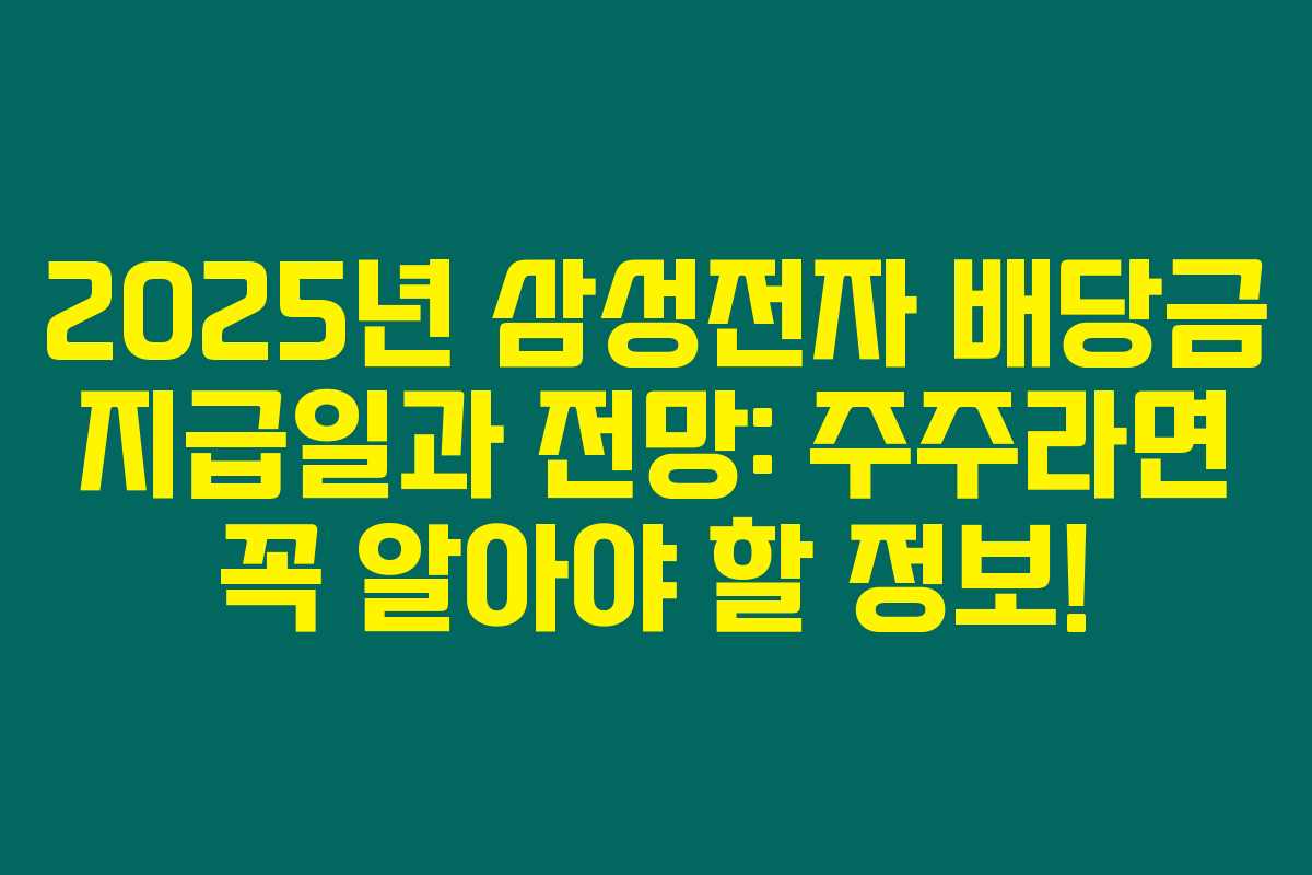 삼성전자 주식을 보유하고 계신가요? 2025년 삼성전자 배당금 지급 일정과 예상 금액이 궁금하시다면, 아래를 읽어보시면 정말 도움이 될 것입니다. 안정적인 배당 정책으로 많은 투자자들에게 사랑받고 있는 삼성전자. 과연 2025년에는 어떤 변화가 있을까요? 투자와 재테크에 관심이 많은 여러분을 위해 준비했습니다!