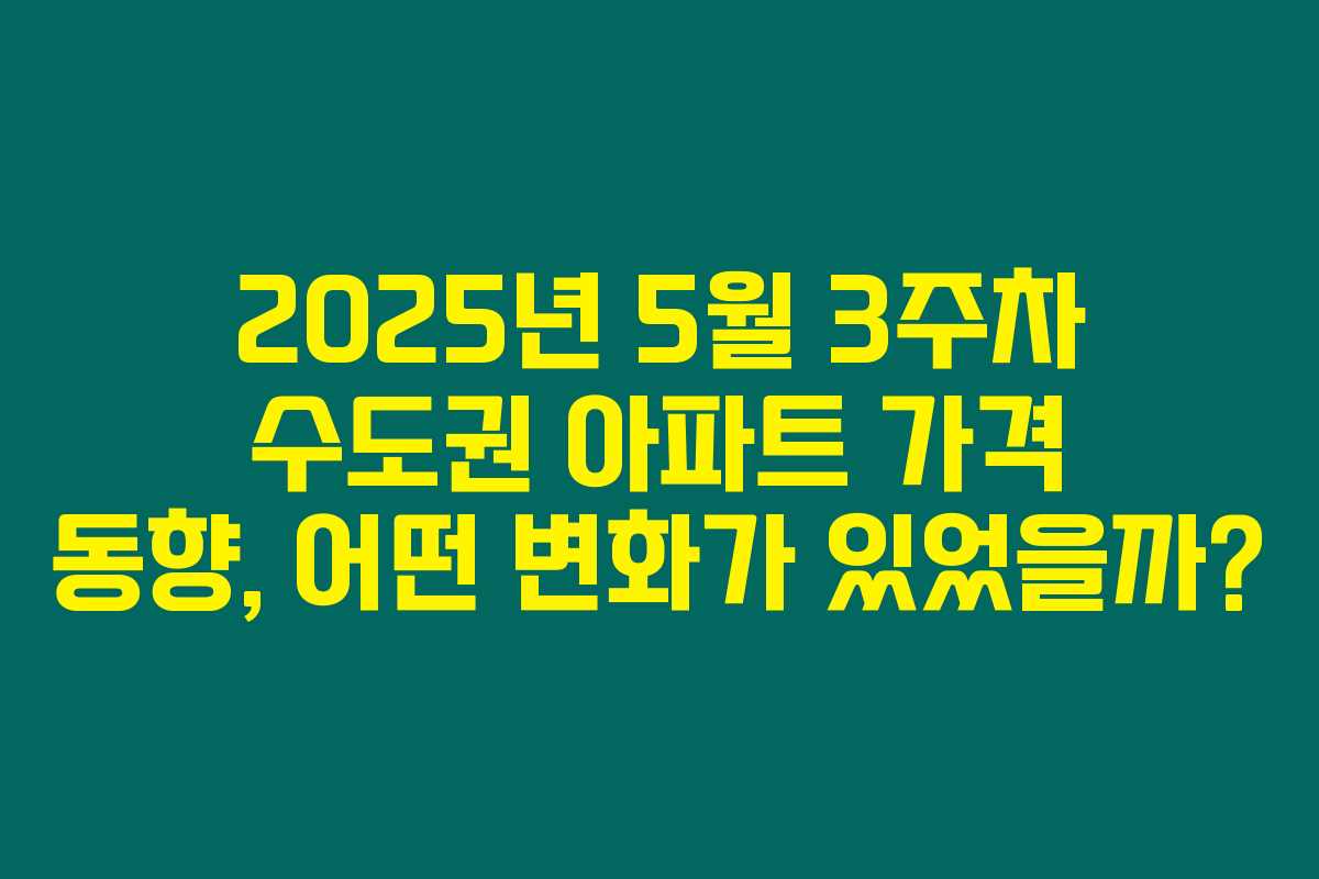 제가 직접 체크해본 바로는, 2025년 5월 3주차의 수도권 아파트 가격 동향은 서울, 경기, 인천 간의 매매와 전세시장에서 뚜렷한 혼조세를 보이며, 특정 지역에서 더 두드러진 가격 변화를 보였습니다. 아래를 읽어보시면 이 시점에서의 아파트 시장 흐름과 향후 전망에 대한 인사이트를 얻으실 수 있습니다.