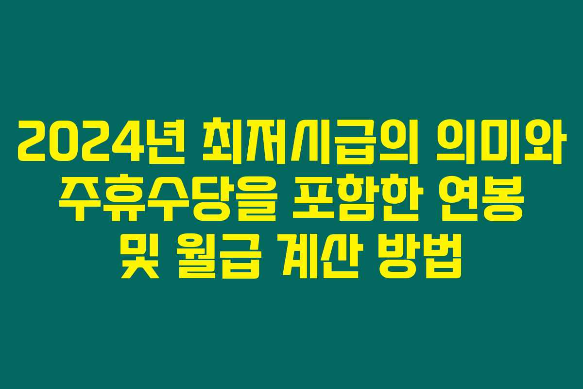 2024년의 최저시급과 관련된 정보에 대해 제가 직접 확인해본 결과, 여러 부분에서 구체적인 계산 및 이해가 필요하다는 생각을 하게 되었어요. 특히, 주휴수당 및 이와 관련된 다양한 요인들을 고려해보고, 여러분들과 정보 공유를 하고자 합니다.