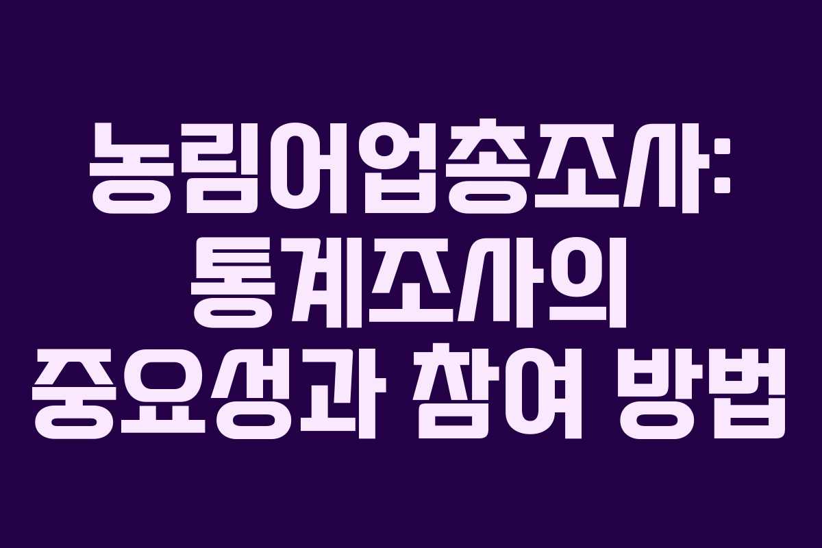 농림어업총조사는 농업, 임업, 어업에 종사하는 가구를 대상으로 진행되는 통계 조사로, 5년마다 인구주택총조사와 함께 실시됩니다. 이 조사는 통계청에서 주관하며, 각 시군구에서 신청을 받아 진행됩니다. 조사에 참여하는 것이 중요하며, 짧은 시간만 투자하면 되므로 많은 참여가 필요합니다.