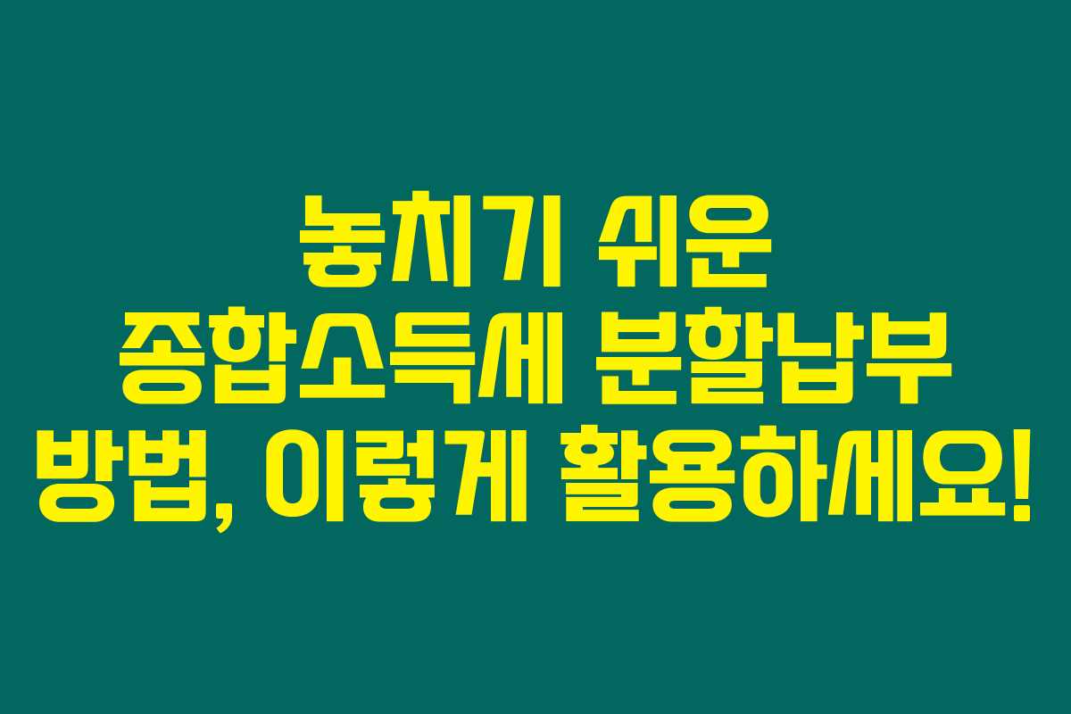 놓치기 쉬운 종합소득세 분할납부 방법, 이렇게 활용하세요!