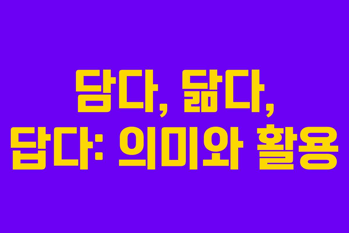 한국어에서 ‘담다’, ‘닮다’, ‘답다’는 각각 다른 의미를 지닌 동사로, 일상생활에서 자주 사용됩니다. 이 글에서는 이 세 가지 동사의 의미와 활용 방법을 살펴보겠습니다.