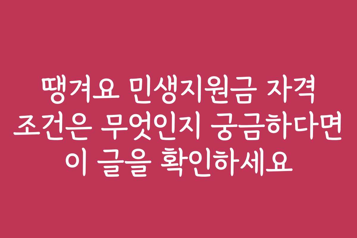 - 땡겨요 민생지원금, 자격 조건을 알아보자!