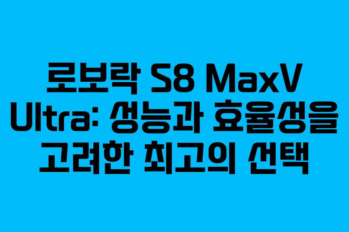 로보락 S8 MaxV Ultra는 청소 효율과 강력한 성능을 제공하는 로봇청소기로, 최신 기술이 적용되어 있습니다. 이 제품을 선택할 때는 성능, 청소 효율, 가격을 종합적으로 고려하는 것이 중요합니다.