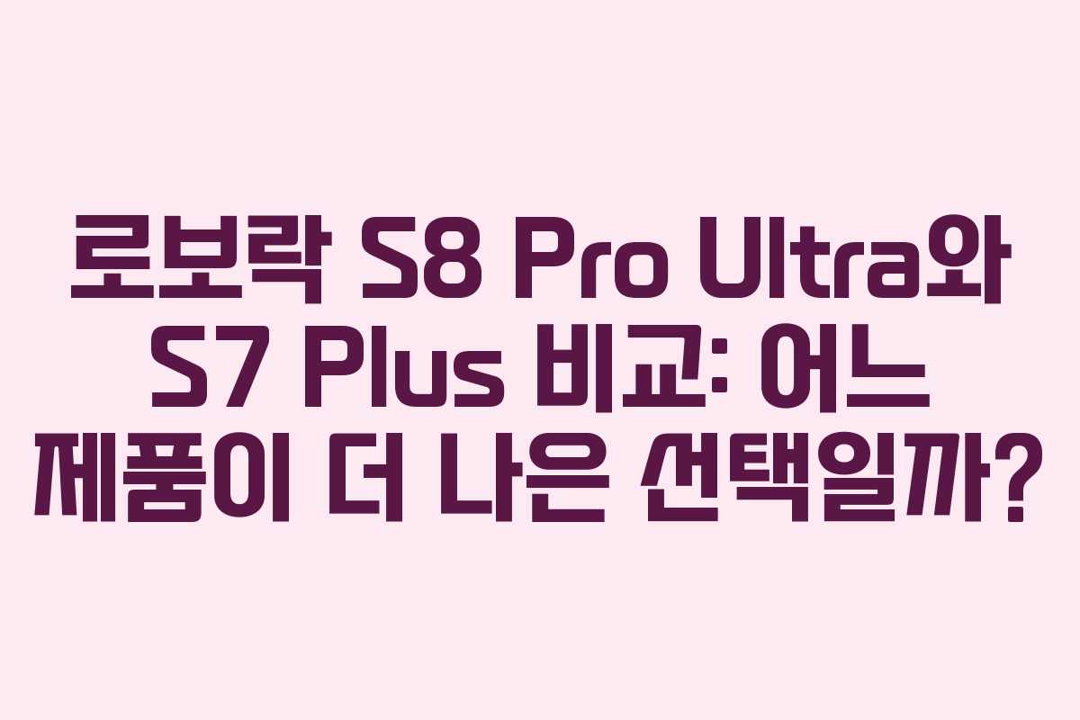 로보락 S8 Pro Ultra와 S7 Plus는 각각의 고유한 장점과 단점이 있습니다. S8 Pro Ultra는 성능과 스마트 기능 면에서 우수한 선택이며, S7 Plus는 예산이 제한된 사용자에게 적합한 모델입니다. 소비자는 자신의 필요와 예산에 맞춰 적절한 제품을 선택하는 것이 중요합니다.