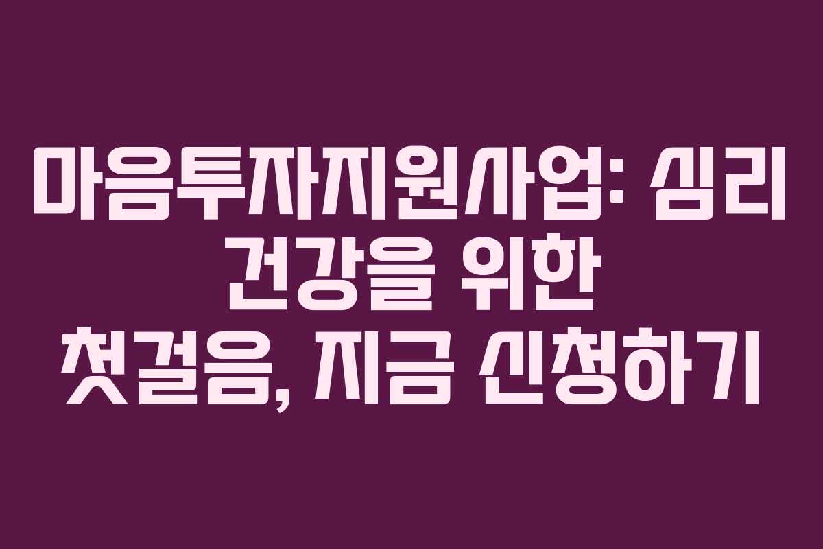 아래를 읽어보시면 마음투자지원사업의 핵심 혜택과 신청 방법, 기대 효과를 한눈에 파악하고 바로 시작할 수 있는 체크리스트를 확인하실 수 있습니다.