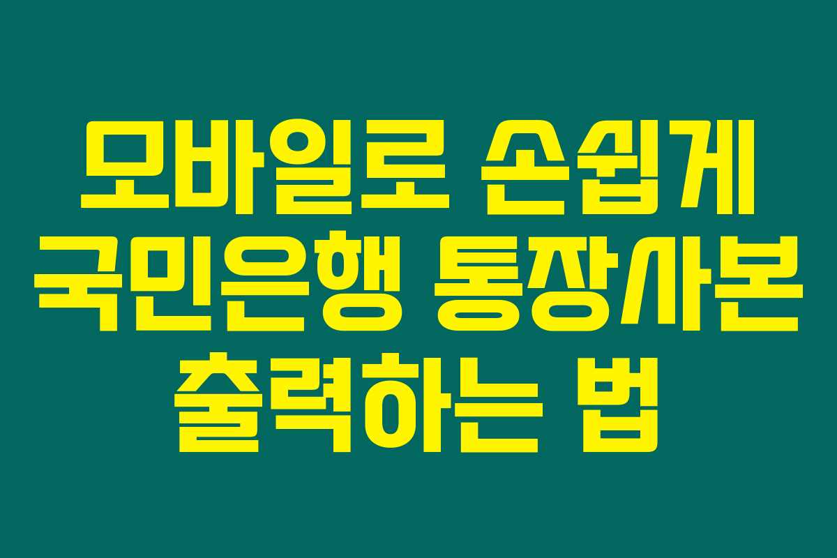 통장사본을 제출해야 할 때, 부담스럽게 실물 통장을 찾는 대신 모바일로 간편하게 처리할 수 있는 방법이 있습니다. 이제는 국민은행 통장사본을 인터넷 뱅킹을 통해 출력하고 저장할 수 있는 시대죠. 아래를 읽어보시면 통장사본을 모바일에서 저장하고 출력하는 간단한 방법을 알게 될 거예요.
