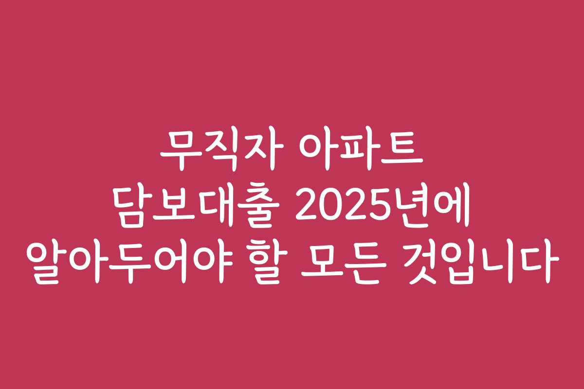 무직자, 아파트, 담보대출, 2025년, 금융기관, 대출 조건, 대출 승인, 신용도, 금리, 주거 지원, 아파트 담보대출