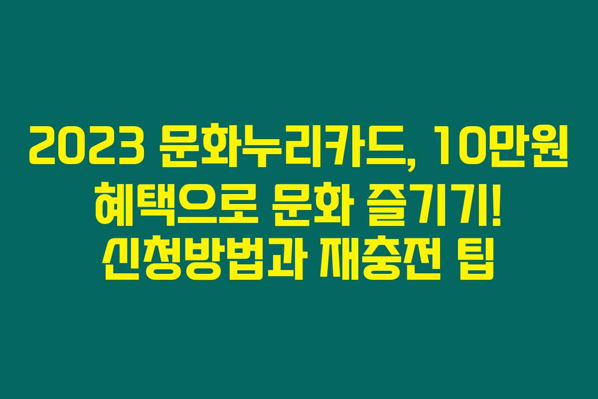 정부에서 문화누리카드로 제공하는 10만원 지원 혜택은 저소득층에게 특별한 문화 경험을 선사할 기회입니다. 문화누리카드를 통해 공연, 전시, 여행 등의 문화 활동을 더 높은 할인율로 즐길 수 있습니다. 아래를 읽어보시면 이 카드의 신청과 재충전 방법, 그리고 활용 팁에 대해 자세히 알아볼 수 있습니다. 지금 바로 확인해 보세요!