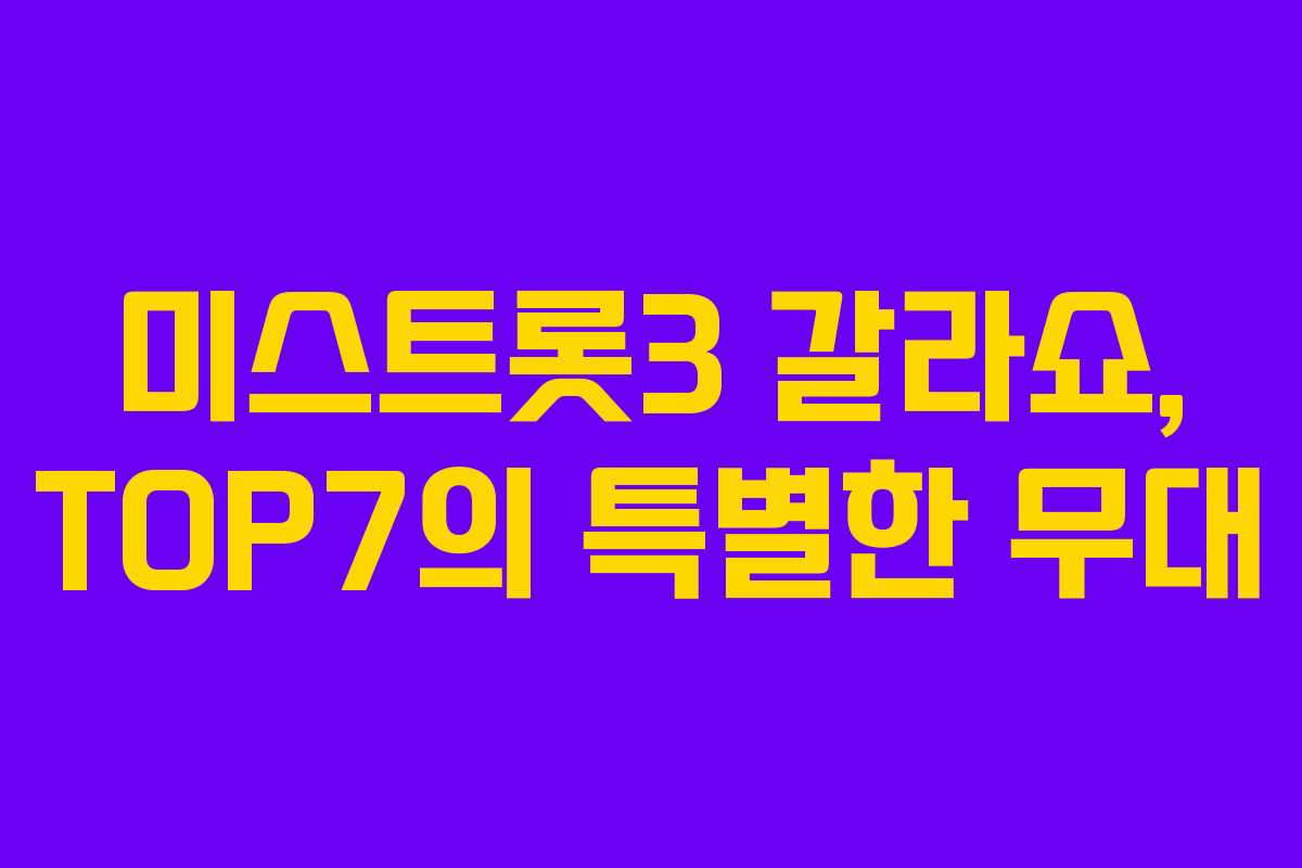 이번 ‘미스트롯3’ 갈라쇼는 팬들에게 잊지 못할 특별한 경험을 선사할 것입니다. TOP7의 멋진 무대와 스페셜 게스트의 퍼포먼스가 어떻게 어우러질지 기대가 됩니다.