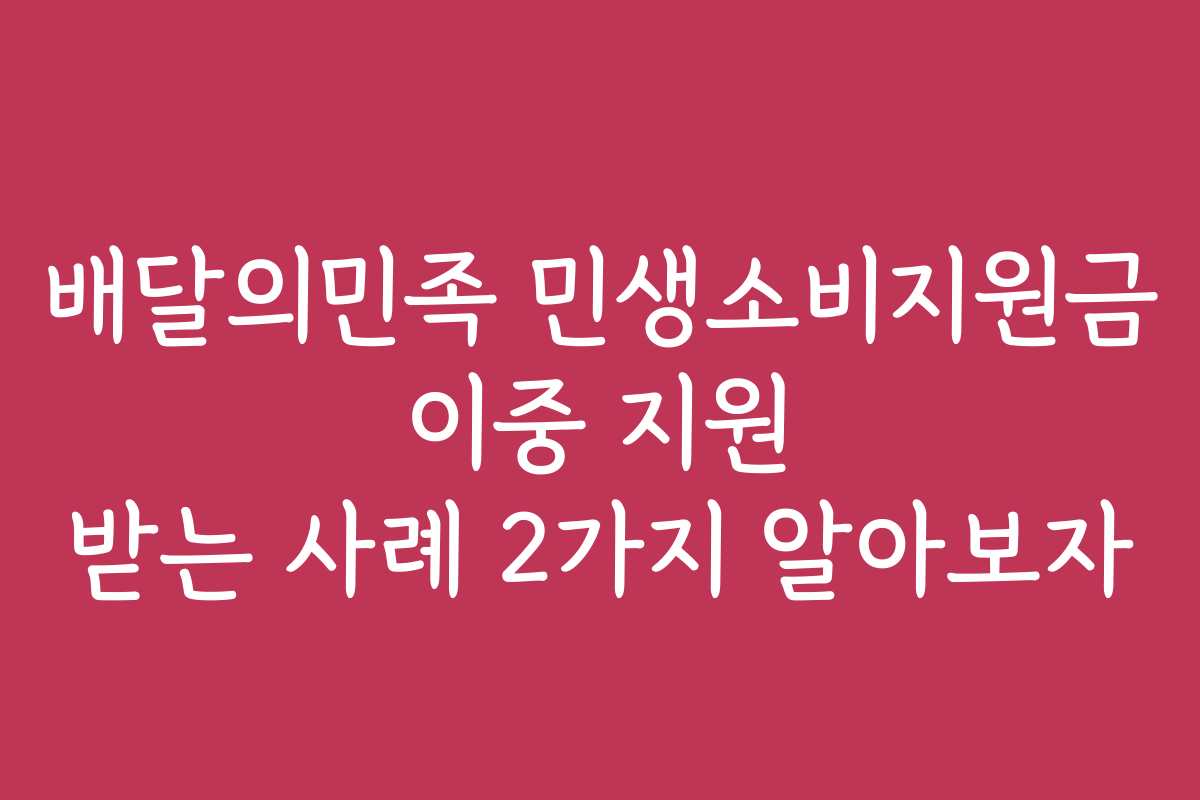 배달의민족 민생소비지원금 이중 지원 받는 사례 2가지 알아보자