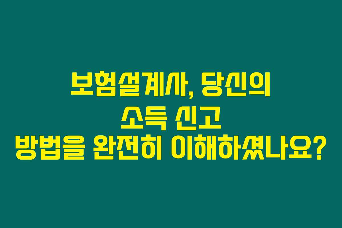 보험설계사님의 경우, 연말정산 또는 종합소득세 신고 어느 쪽이 적합한지를 정확히 판단하는 것이 중요합니다. 자신의 수입과 다른 소득을 정확히 확인한 후, 가장 유리한 방법으로 세금 신고를 진행하길 바랍니다.