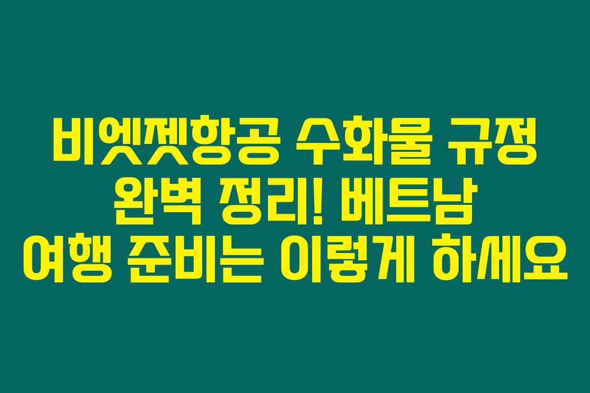 비엣젯항공을 타고 베트남 여행을 계획하고 계신가요? 그러면 비엣젯항공의 수화물 규정을 꼭 확인해야 해요. 무료 및 유료 수하물의 종류와 무게 제한을 제대로 알고 가야 쓸데없는 추가 비용을 지불하지 않을 수 있거든요. 아래를 읽어보시면 비엣젯항공의 수화물 규정과 정보를 알아볼 수 있어요.