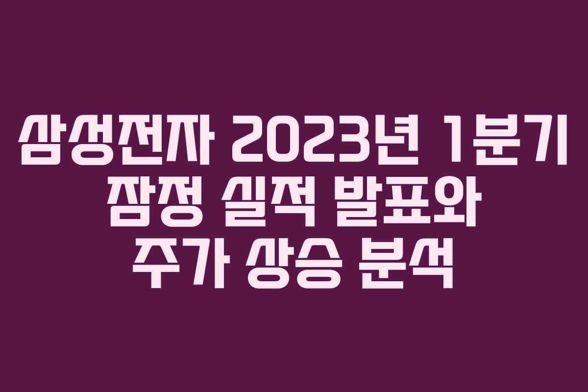 삼성전자가 2023년 1분기 잠정 실적을 발표하였습니다. 예상보다 저조한 실적에도 불구하고 주가는 상승세를 보이며 관심을 받고 있습니다. 이번 글에서는 삼성전자의 실적과 주가 흐름, 그리고 향후 전망에 대해 자세히 살펴보겠습니다.