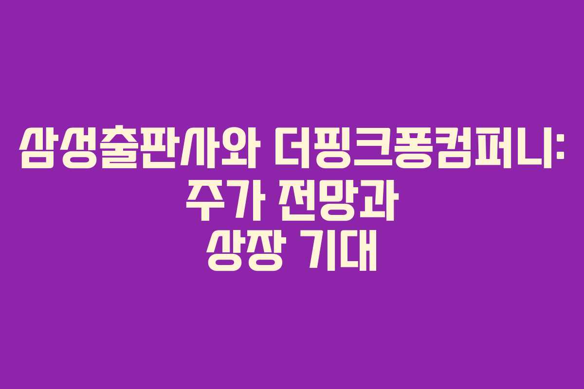 최근 한국 주식 시장에서 삼성출판사가 상한가를 기록하며 많은 투자자들의 관심을 받고 있습니다. 이번 글에서는 삼성출판사의 주가 추이와 더핑크퐁컴퍼니의 상장 일정에 대해 알아보겠습니다.