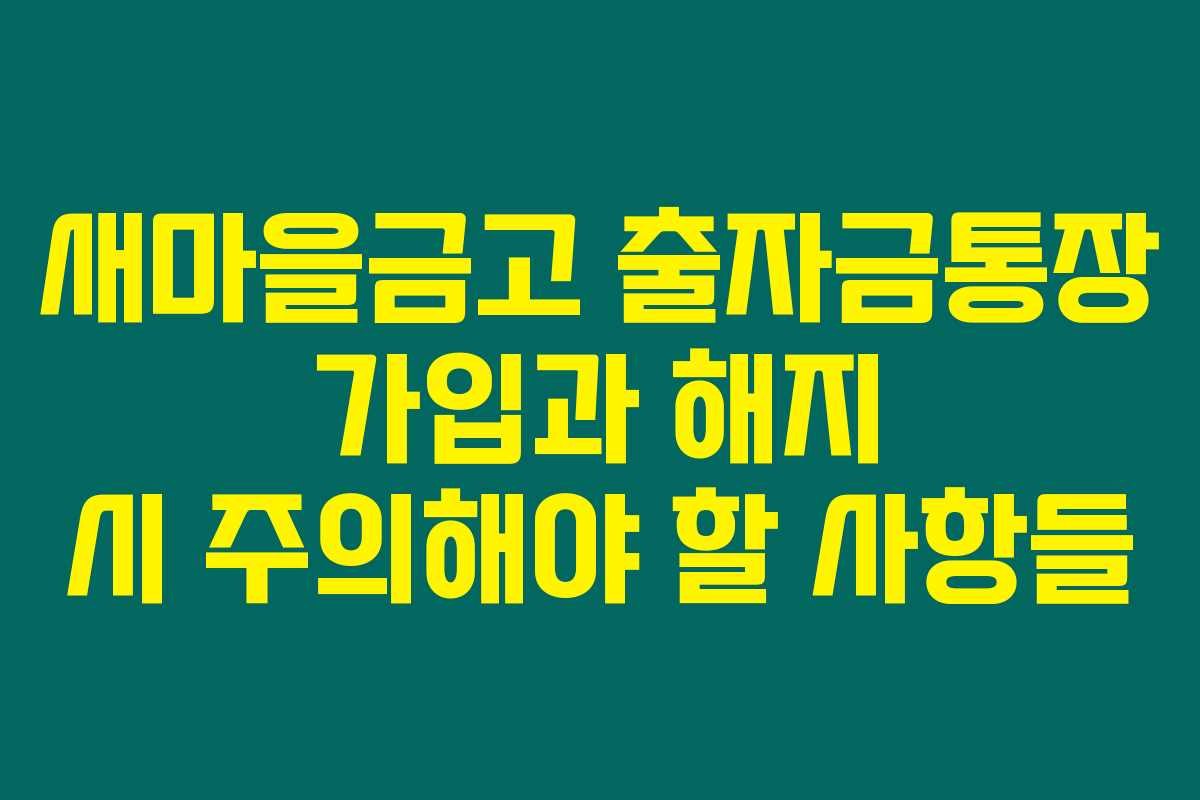 새마을금고 출자금통장은 금융상품 중 인기 있는 선택이지만, 가입과 해지 시 주의해야 할 점이 많아요. 아래를 읽어보시면 어떤 점을 놓치지 말아야 할지 알게 될 거예요. 특히, 초보자라면 더욱 더 주의 깊게 살펴보시기 바랍니다.