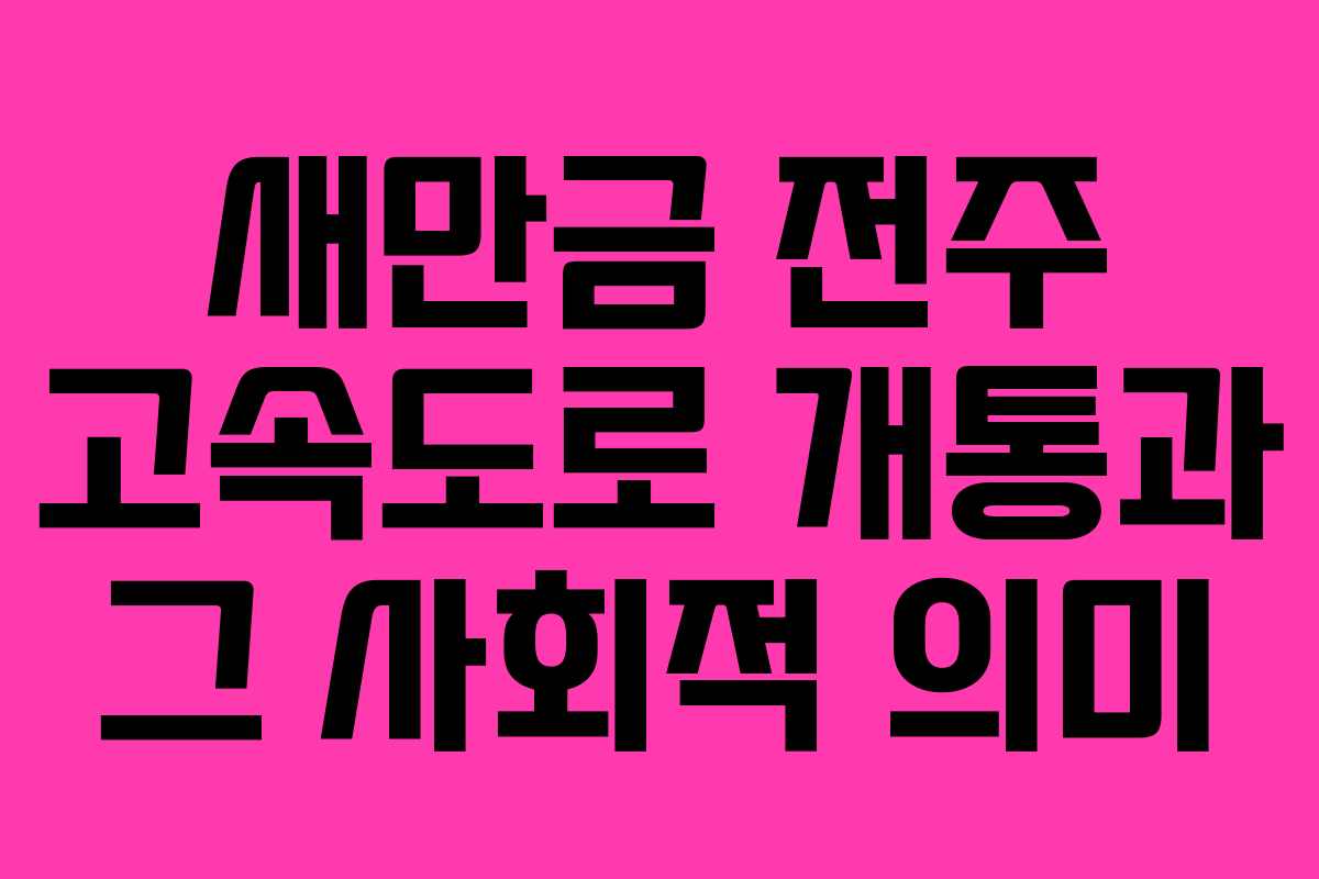 새만금 전주 고속도로 개통과 그 사회적 의미