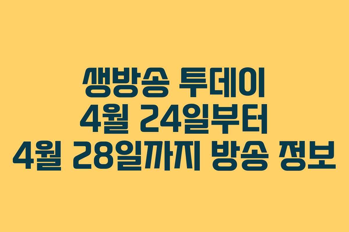 이번 주 생방송 투데이에서는 다양한 맛집과 흥미로운 장소들이 소개됩니다. 아래에서 각 날짜별 방송 내용을 자세히 살펴보겠습니다.