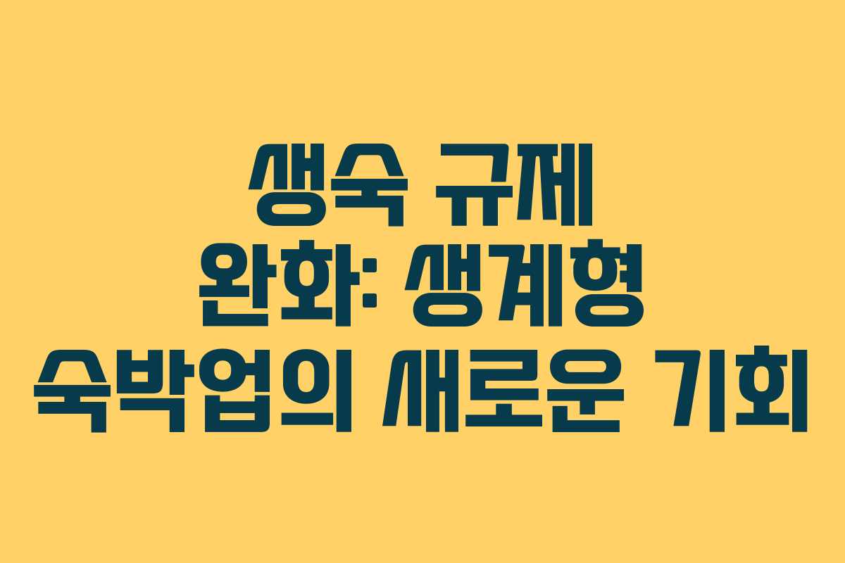 생숙 규제 완화는 생계형 숙박업에 있어 새로운 기회를 제공하는 중요한 변화입니다. 이 기회를 통해 성공적인 사업 운영을 위한 철저한 준비가 필요합니다.