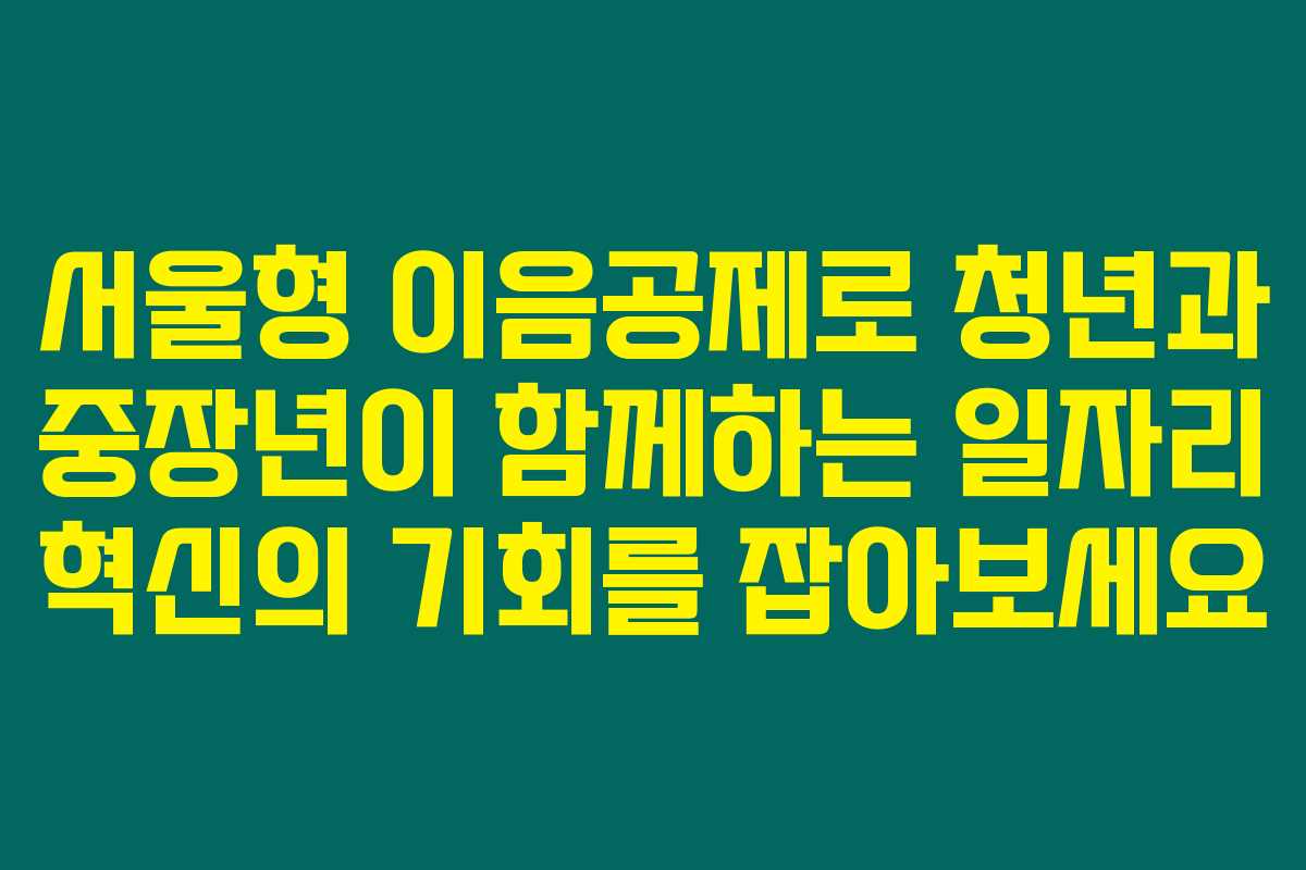 청년과 중장년이 함께 일자리를 찾고 있다면 주목해야 할 제도가 있어요. 바로 서울형 이음공제입니다. 이 제도는 청년과 중장년이 함께 상생할 수 있는 길을 마련해줘요. 만약 당신이 청년이거나 중장년이라면 이 글을 읽고 반드시 알아봐야해요. 서울형 이음공제의 혜택과 신청 방법을 아래를 읽어보시면 자세히 알 수 있어요.