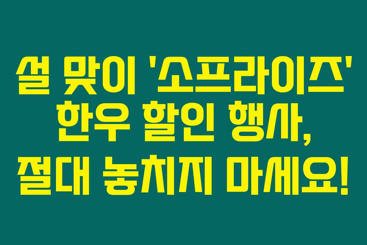 제가 직접 체크해본 바로는, 2024년 설을 맞아 진행되는 ‘소프라이즈’ 한우 할인 행사는 한우를 사랑하는 사람이라면 절대 놓치지 말아야 할 기회예요. 최대 50%까지 할인된 가격으로 신선한 한우를 구입할 수 있는 이번 이벤트는 전국단위로 진행되며, 온라인과 오프라인에서 참여 가능합니다. 아래를 읽어보시면, 한우 할인 행사에 대한 자세한 정보와 팁을 확인할 수 있어요.