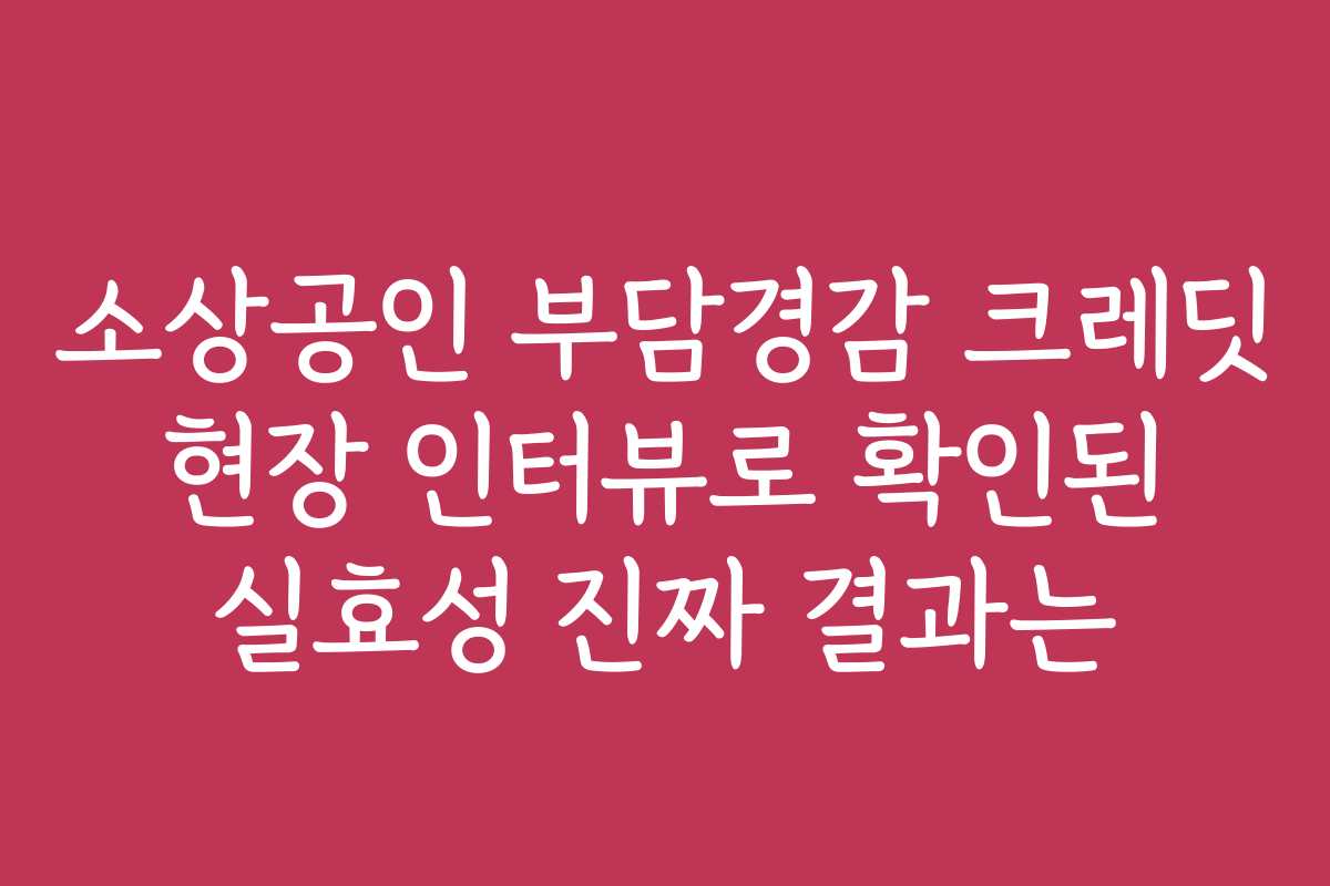 소상공인 부담경감 크레딧 현장 인터뷰로 확인된 실효성 진짜 결과는