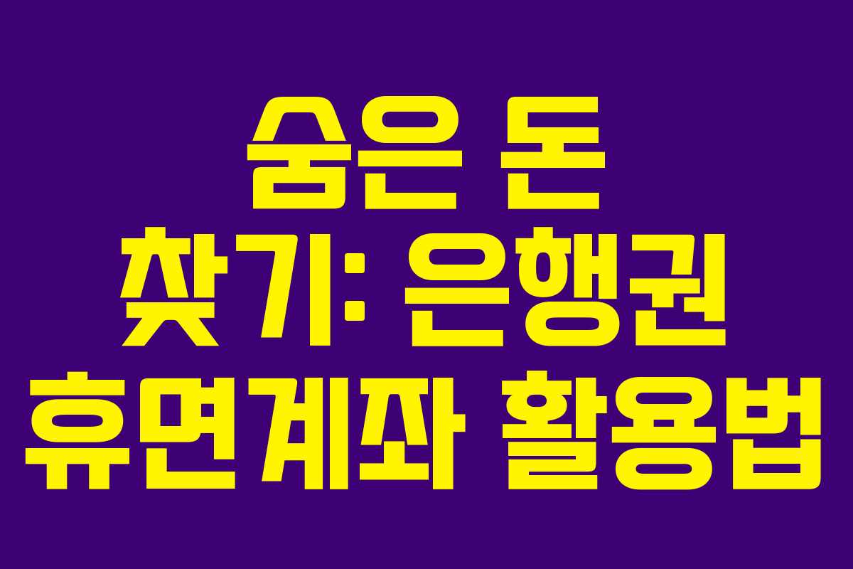 은행권의 휴면계좌를 활용해 숨은 돈을 찾아보는 것은 결코 어려운 일이 아닙니다. 이러한 서비스를 통해 잊고 있던 자산을 찾아보는 것은 여러분의 생활에 작은 도움이 될 수 있습니다.