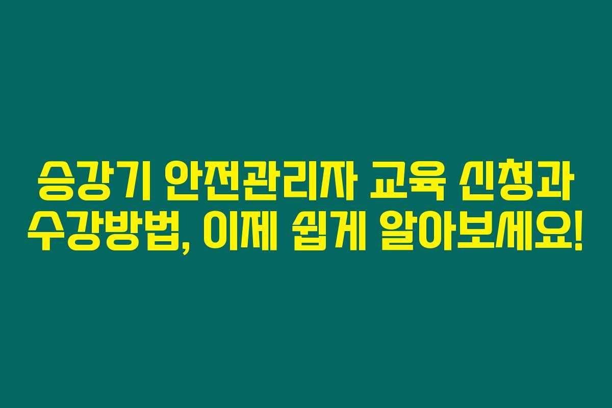 제가 직접 체크해본 바로는 승강기 안전관리자 교육 신청은 매우 간편해요. 다음 단계를 따라 하면 누구나 쉽게 신청할 수 있답니다!