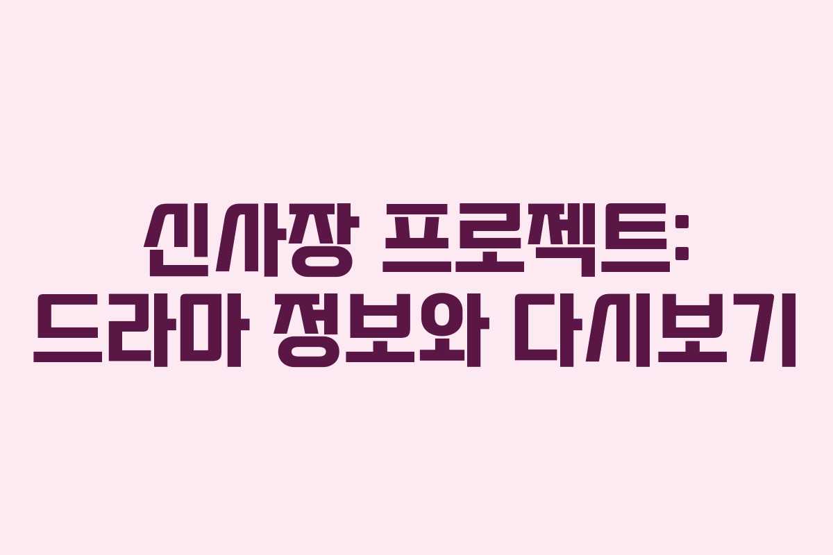 신사장 프로젝트는 tvN에서 방영될 예정인 드라마로, 한석규가 주연을 맡아 많은 기대를 받고 있습니다. 이 드라마는 평범한 치킨집 주인이 전직 FBI 협상가라는 독특한 설정을 가지고 있습니다. 이번 글에서는 드라마의 기본 정보, 출연진, 줄거리, OTT 다시보기 정보 등을 정리하겠습니다.
