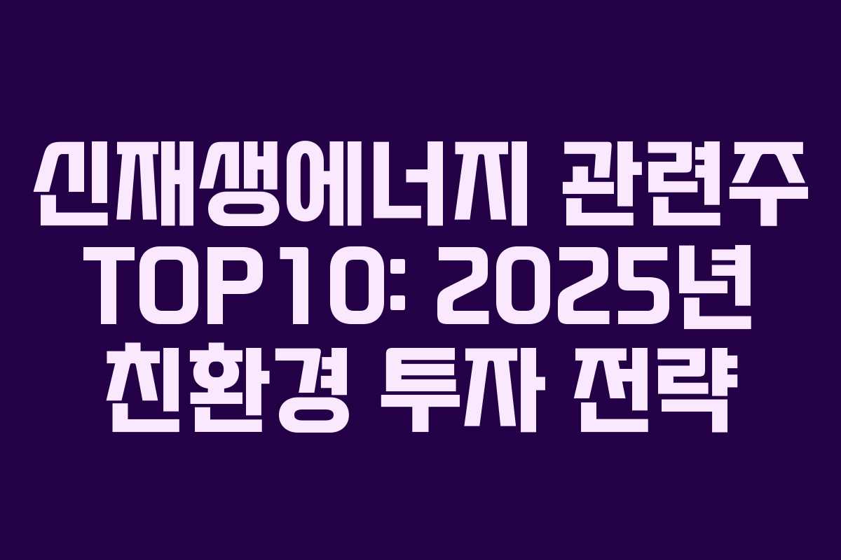 2025년 신재생에너지 시장은 정책 수혜와 글로벌 ESG 투자 흐름에 힘입어 강력한 상승세를 보일 것으로 기대됩니다. 본 글에서는 태양광, 풍력, 수소, 전력 인프라 등 다양한 분야에서 주목받는 신재생에너지 관련주 TOP10을 소개합니다.