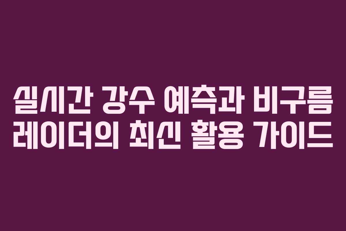 아래를 읽어보시면 실시간 강수 예측의 중요성과 비구름 레이더의 작동 원리, 최신 활용 사례를 한눈에 이해할 수 있습니다.