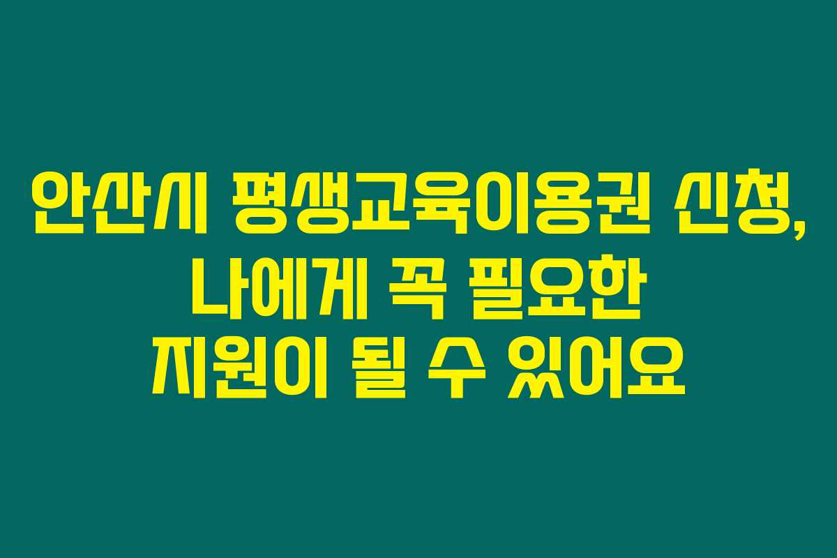 제가 알아본 바로는, 안산시가 2025년 제1차 평생교육이용권 신청자를 모집하고 있다는 소식이 많은 사람들에게 긍정적인 반향을 일으키고 있어요. 이 프로그램은 취약계층이 다양한 교육 기회를 가질 수 있도록 돕는 정책으로, 특히 평생학습에 대한 관심이 높은 요즘에 매우 유용하지요. 아래를 읽어보시면 이 신청 과정과 필요한 정보에 대해 더욱 자세히 알 수 있을 거예요.