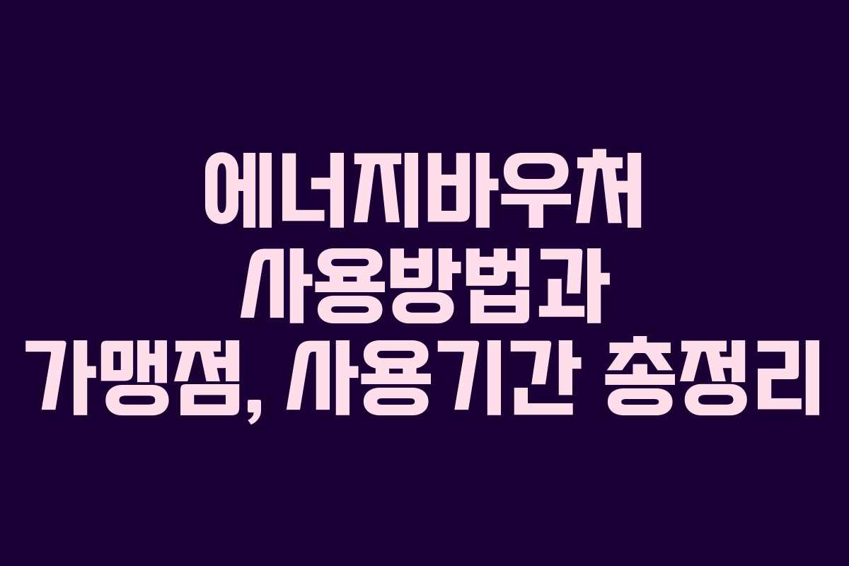 에너지바우처 사용방법과 가맹점, 사용기간 총정리
