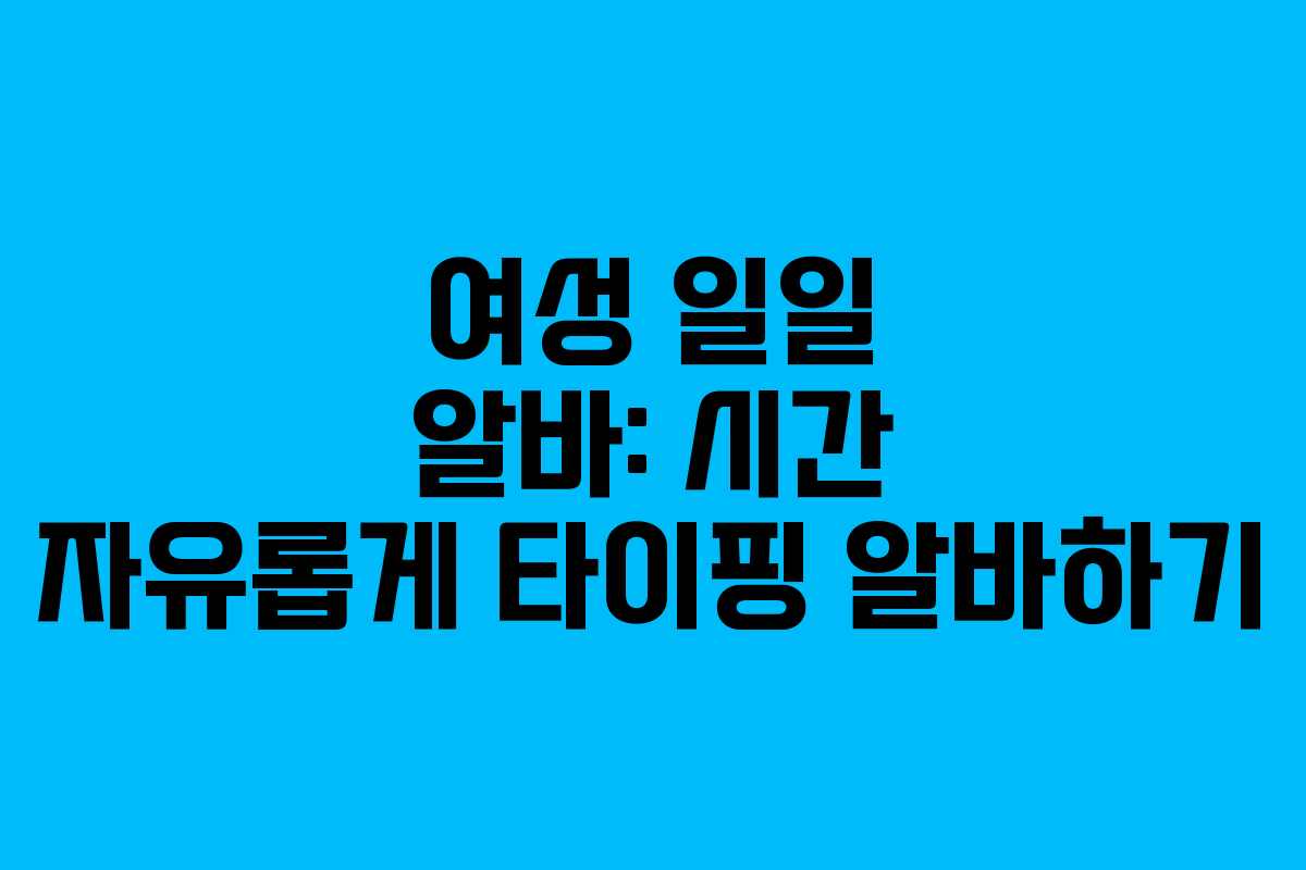 여성 일일 알바는 시간의 제약 없이 편리하게 진행할 수 있는 좋은 기회입니다. 특히, 타이핑 알바는 하루 1시간만 투자해도 괜찮은 수익을 올릴 수 있어 많은 주부들과 학생들에게 인기를 끌고 있습니다.
