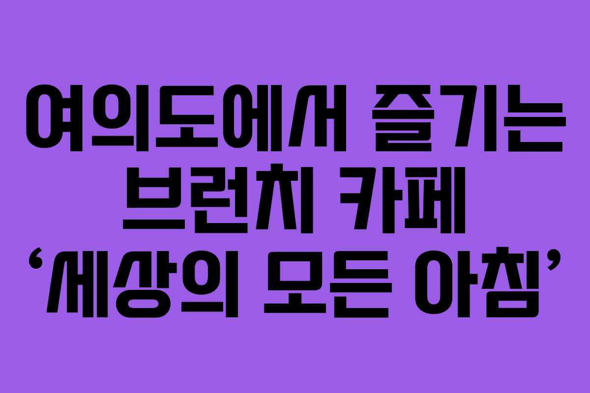 여의도역 근처에 위치한 브런치 카페 ‘세상의 모든 아침’은 멋진 뷰와 함께 맛있는 브런치를 즐길 수 있는 곳입니다. 이곳은 특히 주말이나 공휴일에 많은 인기를 끌고 있어 미리 대기 등록을 하는 것이 좋습니다.