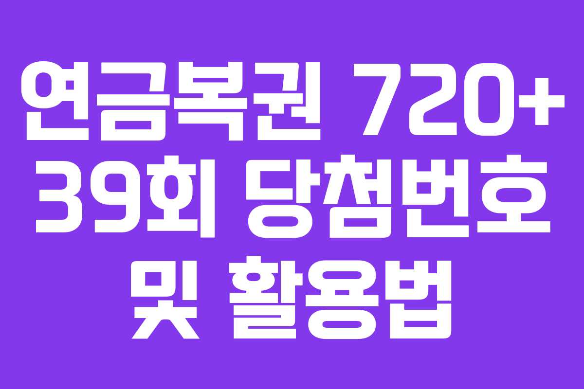 연금복권 720+의 39회차 당첨번호가 발표되었습니다. 이번에 당첨된 행운의 1등 번호는 매달 700만원을 20년 동안 받을 수 있는 기회를 제공합니다. 이 글에서는 연금복권 720+의 특징과 당첨번호, 활용법에 대해 알아보겠습니다.